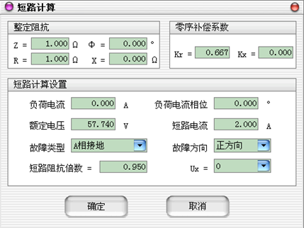 單擊微機(jī)繼電保護(hù)測(cè)試儀(鍵盤(pán)版)“短路計(jì)算”,可進(jìn)入短路計(jì)算公式的參數(shù)設(shè)置對(duì)話(huà)框: