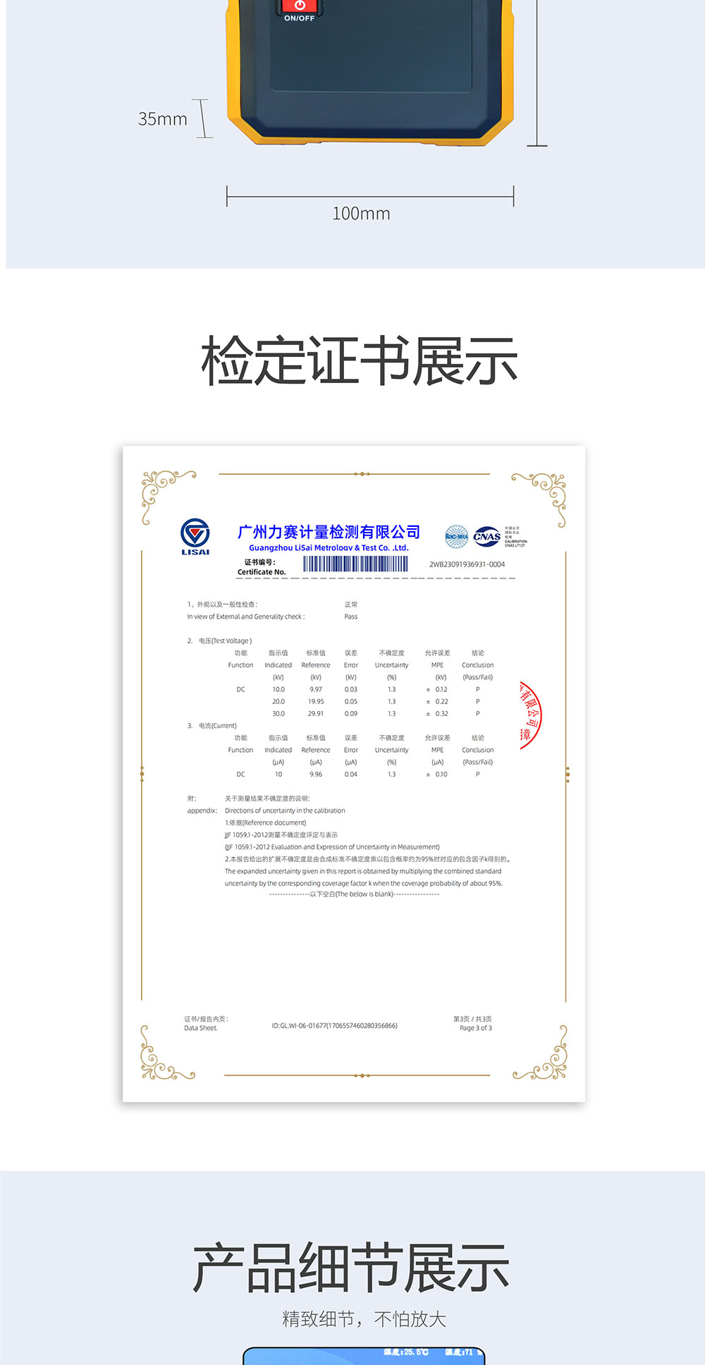 7.供電方式:可充電鋰電池,一次充滿電,可進行動作測試2000次以上。